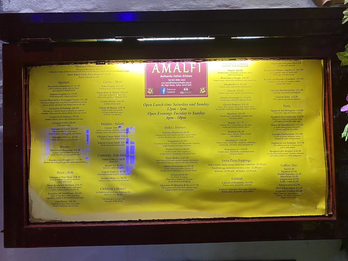 Welcome to Amalfi, where authentic Italian flavors come alive in the heart of Hythe. Nestled at 6b High St, this charming eatery evokes the warmth and hospitality of Italy from the moment you walk in. The menu boasts an enticing array of starters, including the delightful Bruschetta Pomodoro and the indulgent Antipasto All' Italiana, perfect for sharing. The risottos are expertly crafted, notably the Risotto Alla Pescatora, celebrating the bounties of the sea.